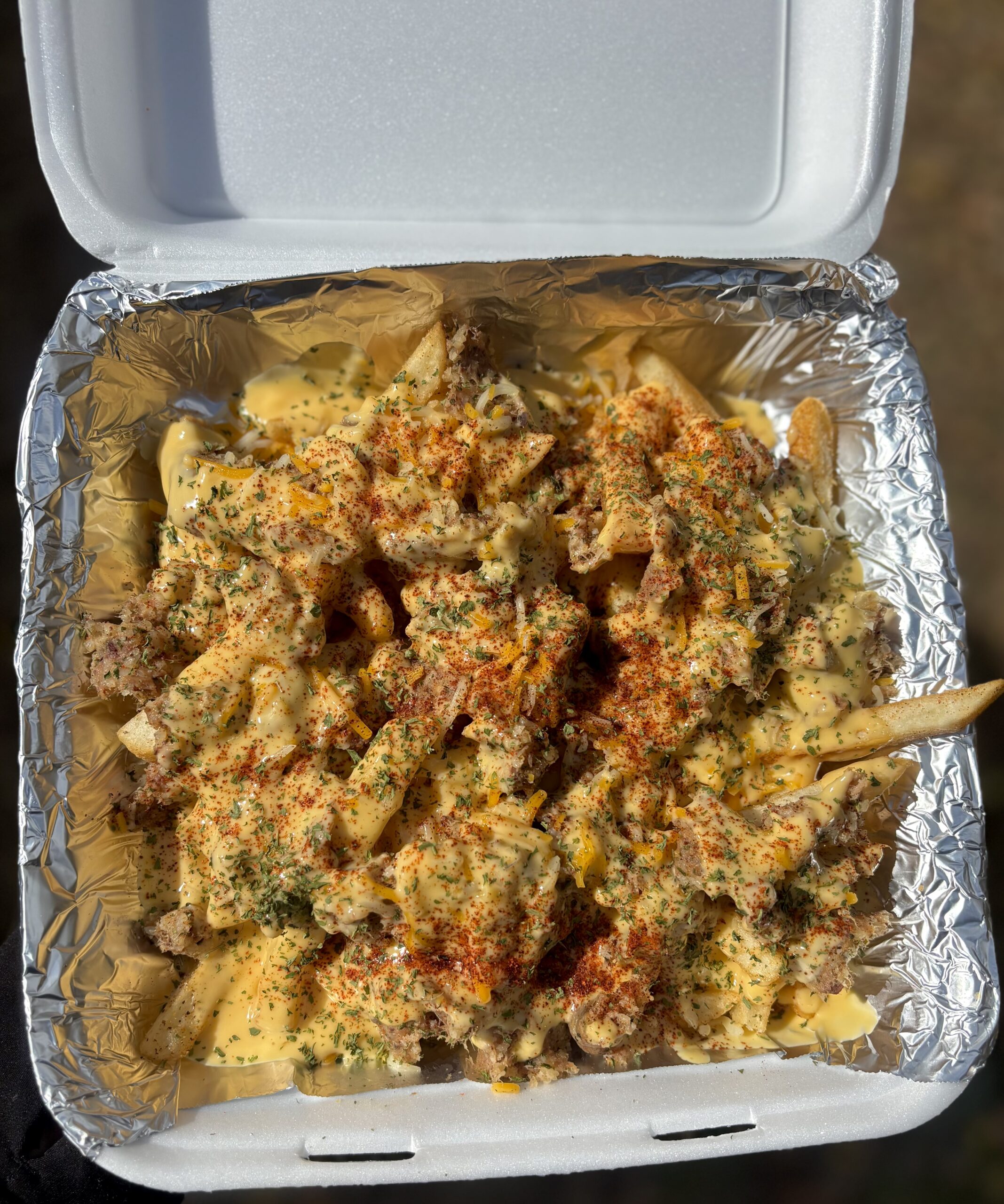Boudin Cheese Fries with Cheese for Str8 Out Dat Raq Eatz