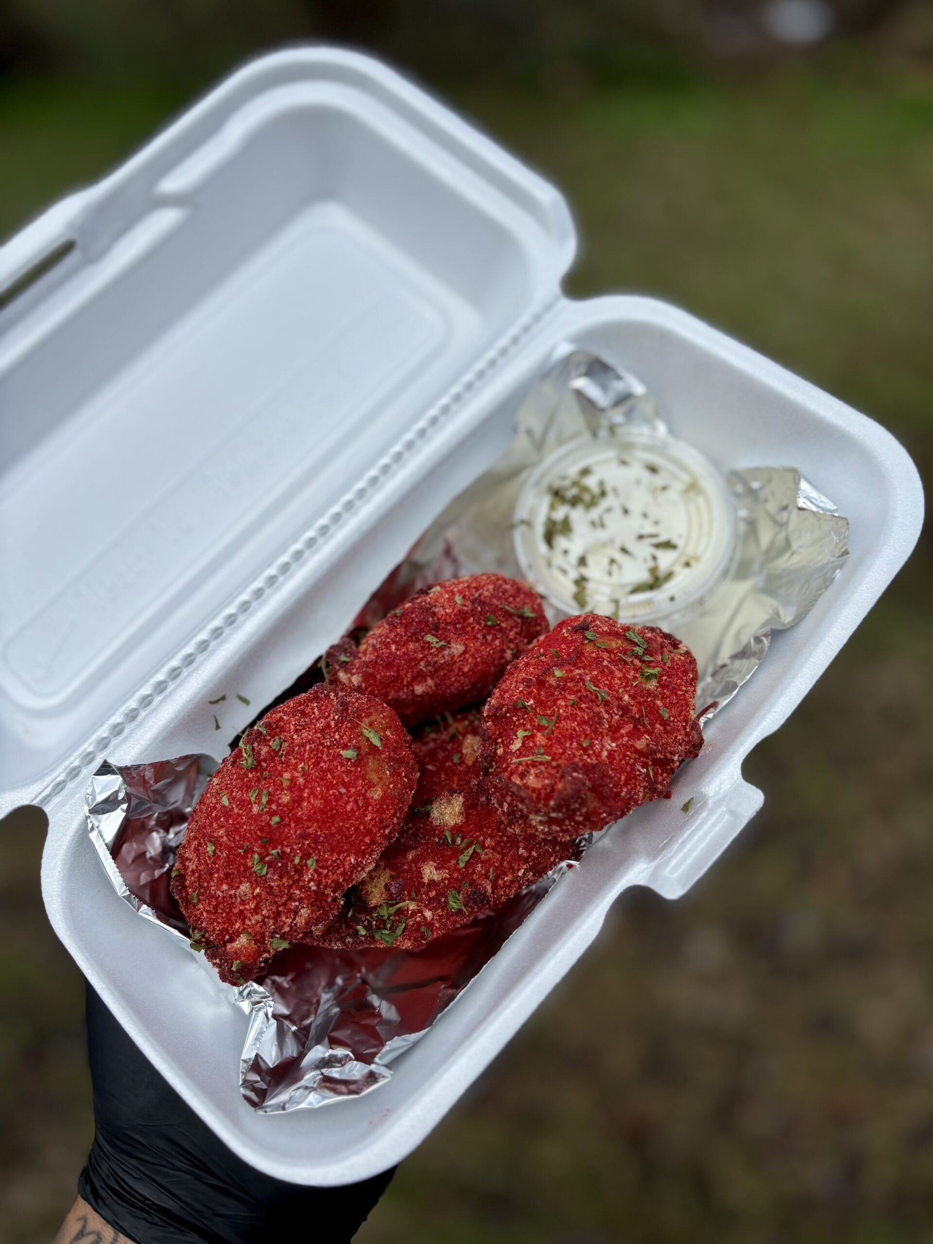Discover bold, spicy flavor with Str8 Out Dat Raq Eatz’s Hot Cheetos Jalapenos Poppers (4pcs.). These irresistible bites combine the fiery kick of hot Cheetos with the zesty taste of jalapenos, all wrapped in a crunchy, savory coating. Perfect for snacking or sharing at parties, they deliver a satisfying heat and flavor explosion in every bite. Elevate your snack game with these fiery jalapeno poppers that pack a punch of flavor and heat!