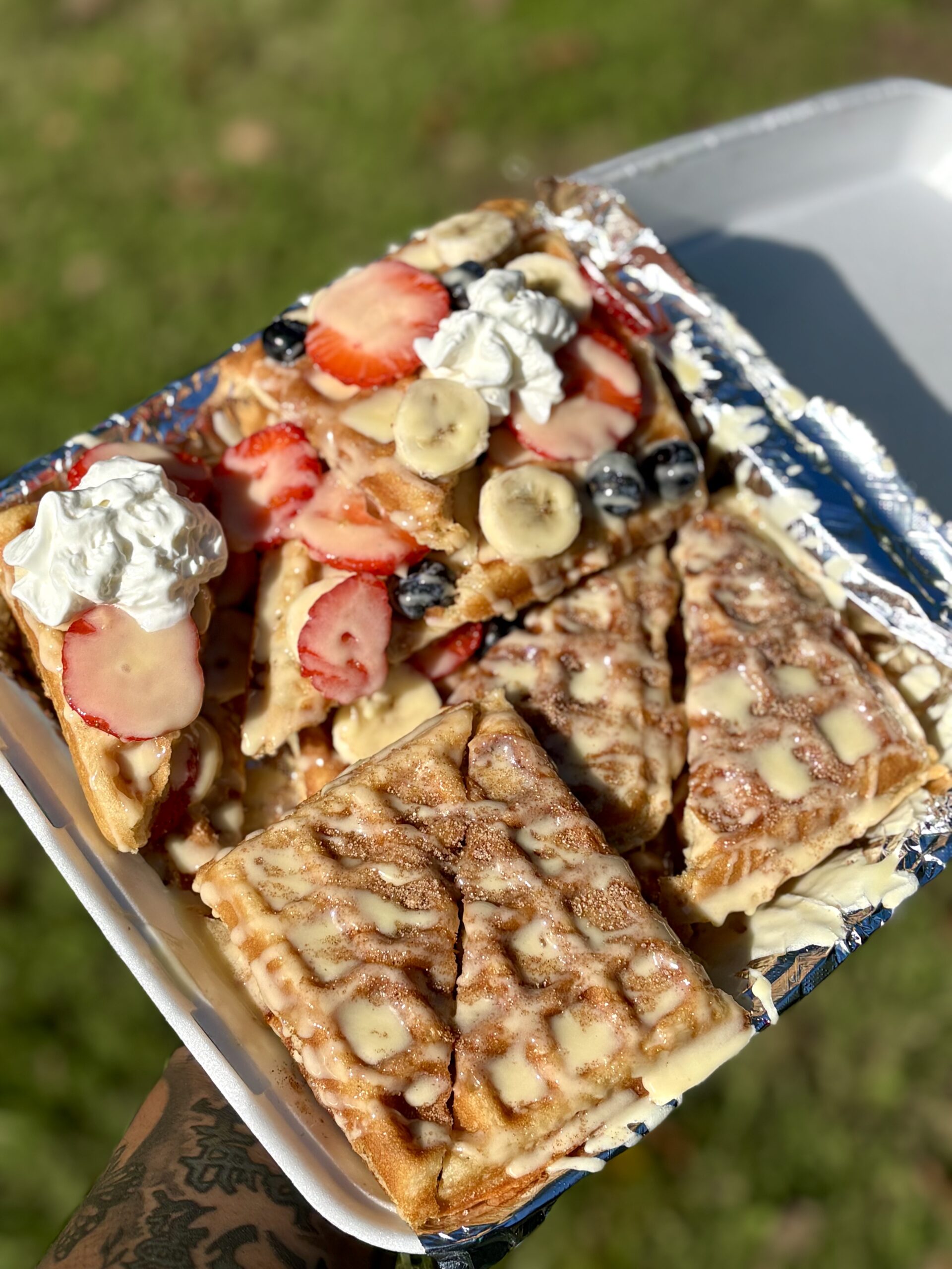 Tracey’s Mix & Match Combos from Str8 Out Dat Raq Eatz let you customize your Basic Waffle Pan with two delicious toppings of your choice. This combos offer a flavorful and satisfying meal experience.
