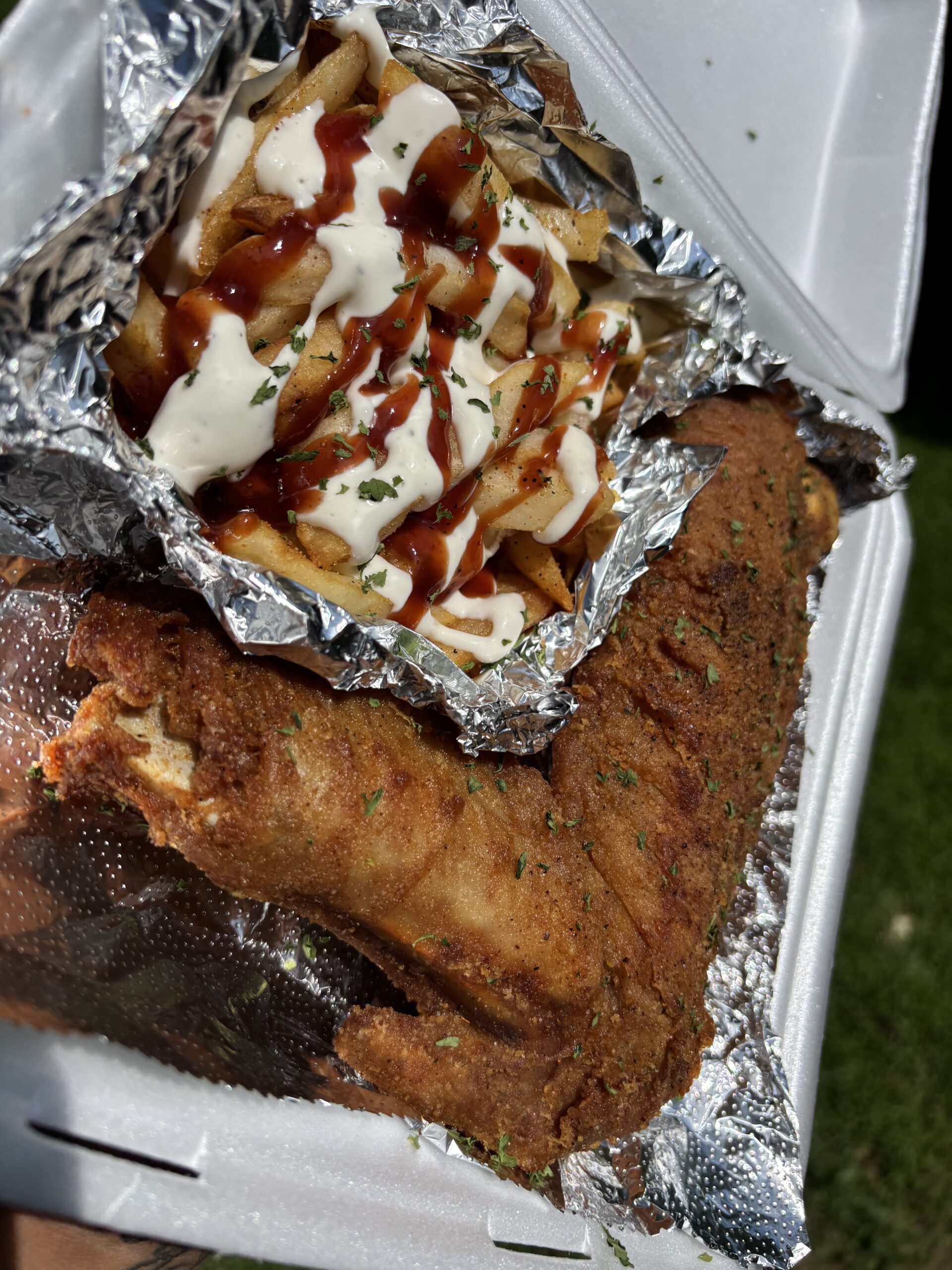Our Fried Turkey Wing and Fries meal features crispy, golden-brown turkey wings served alongside perfectly seasoned fries, delivering bold flavors with every bite. It’s the ultimate comfort food combo that satisfies your craving for savory, juicy wing paired with crispy fries. Comes w/ 1 sauce cup. Notice: All sauced fries contain ranch dressing in combination with the other sauce that you select.