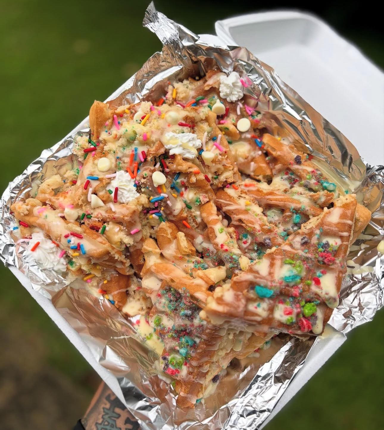 Regular Waffles (Light Glaze), Captain Crunch, Cinnamon Glaze, Cookie Cake, Fruity Peebles
